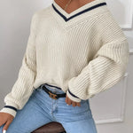 Izraziti kontrastni prugi dodajajo igriv barvni poudarek, medtem ko mehko padajoča ramena dopolnjujejo ležeren eleganten videz. Ne glede na to, ali ga nosiš z jeansom za sproščen outfit ali preko bluze za šik videz – Marina združuje udobje s stilom.